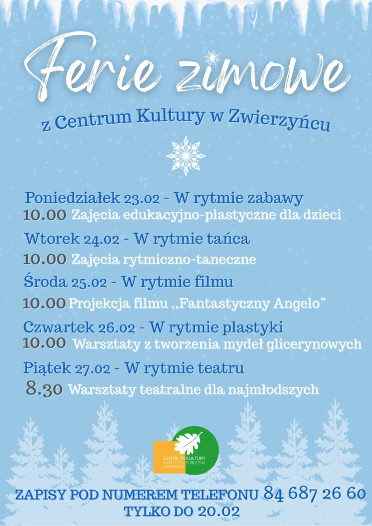 Zapraszamy wszystkie dzieci w wieku szkolnym do naszego Centrum Kultury na tydzień pełen kreatywnej zabawy! ![]()