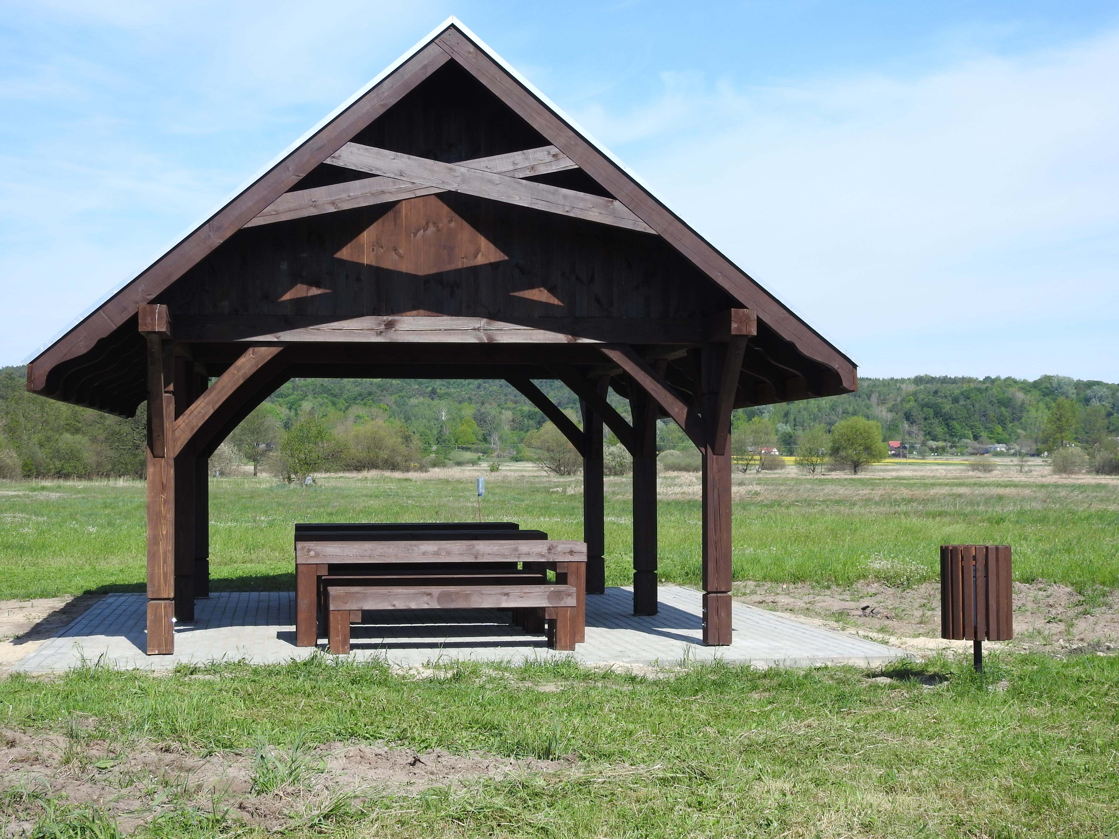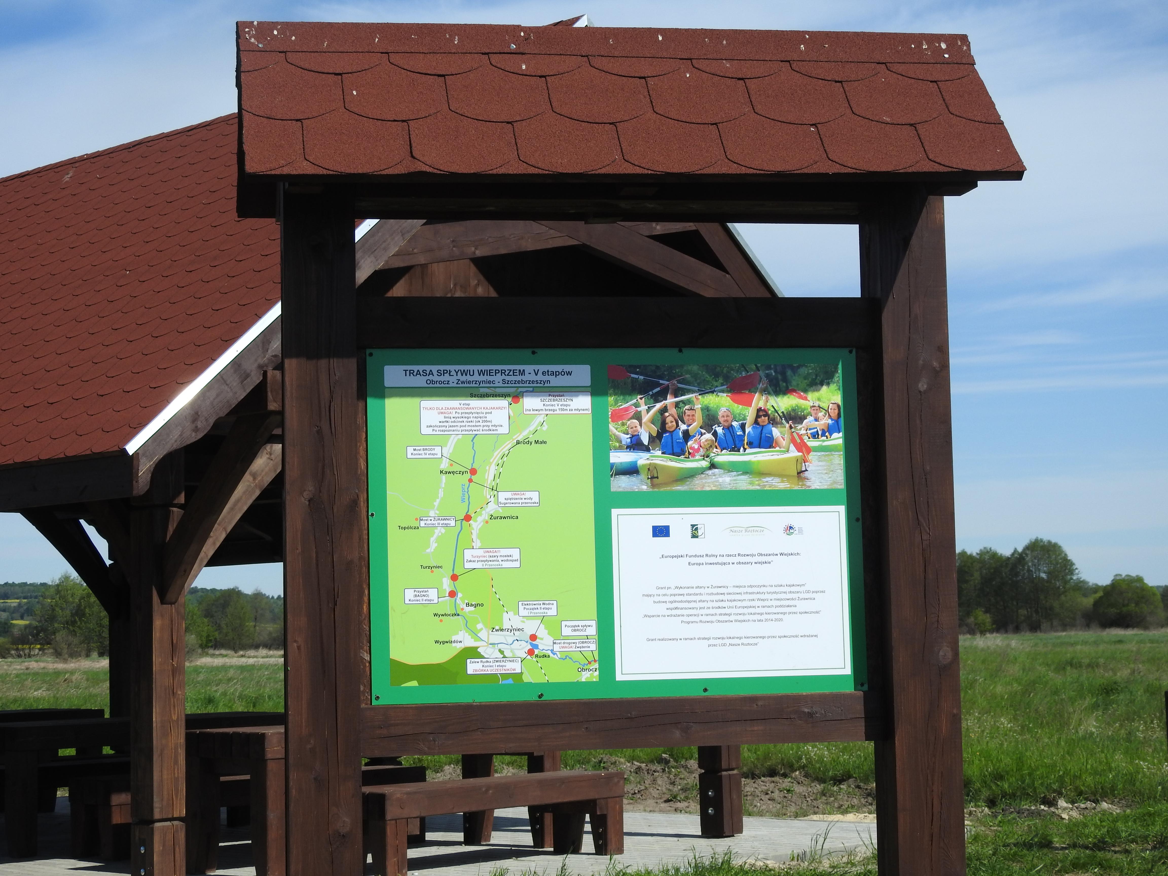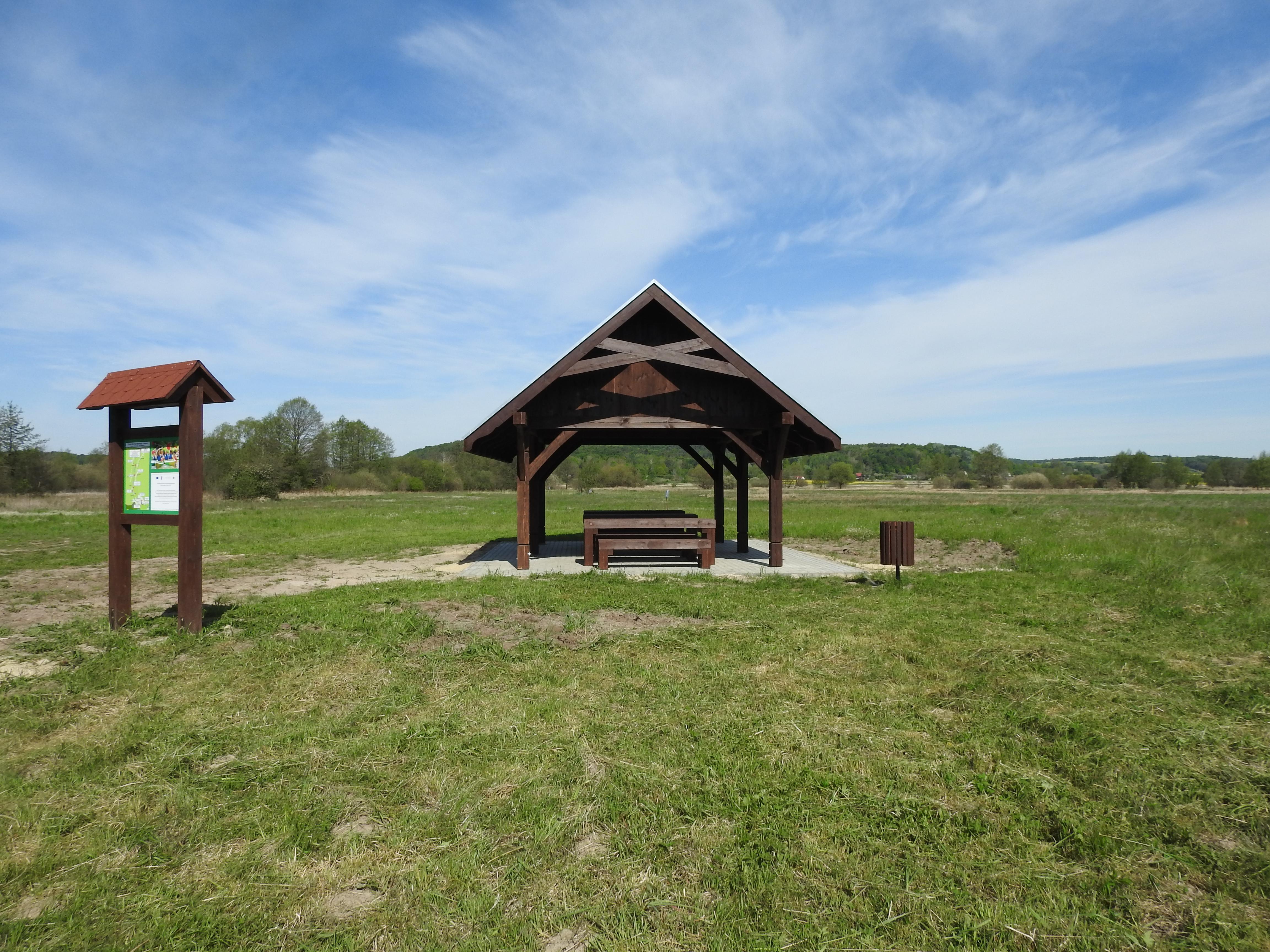 Realizacja zadania polegała na stworzeniu miejsca odpoczynku dla kajakarzy. Zakres zadania obejmował wykonanie altany, nawierzchni utwardzonej, stołów, ław, pojemnika na odpady i tablicy informacyjnej.